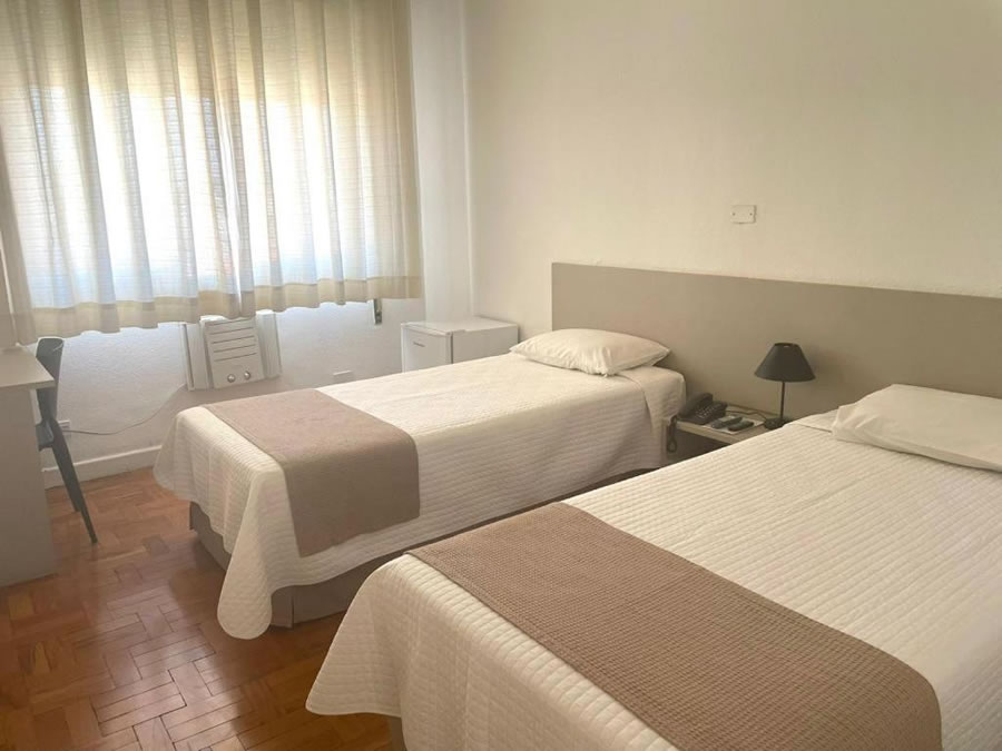 O Grande Hotel Amparo oferece hospedagem confortável com estrutura ideal para famílias, casais e viajantes a trabalho. Os quartos são equipados com ar-condicionado, banheiro privativo, TV, frigobar, guarda-roupa, mesa de trabalho e sofá-cama, além de agradáveis vistas para a montanha ou para a cidade. O hotel disponibiliza Wi-Fi gratuito, elevador, recepção 24 horas, serviço de limpeza e opções de quartos interligados, garantindo praticidade e comodidade durante a estadia. Para começar bem o dia, os hóspedes podem desfrutar de um café da manhã especial servido diariamente, muito elogiado por quem visita o Grande Hotel Amparo.