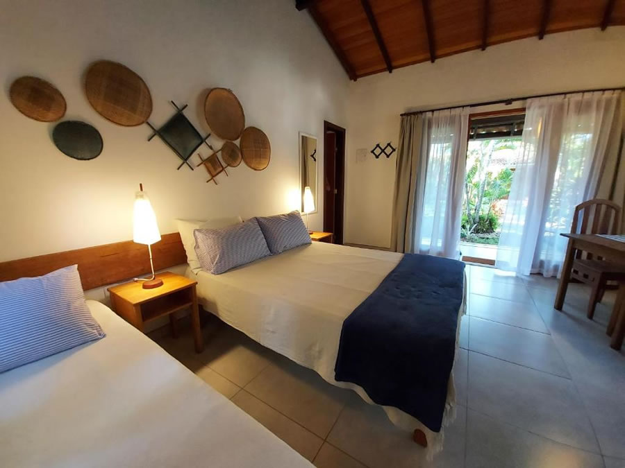 A Pousada Porto do Meio, em Arraial d'Ajuda, é perfeita para quem busca conforto e tranquilidade. Com piscina ao ar livre, jardim, terraço e lounge compartilhado, a pousada oferece quartos com ar-condicionado, TV, cofre, cafeteira, geladeira, micro-ondas e banheiro privativo. Algumas unidades têm varanda térrea com vista para o jardim. Wi-Fi gratuito, estacionamento e roupa de cama e toalhas inclusos garantem uma estadia completa.