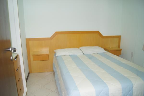 Quartos de casal com cama box, um amplo guarda roupas e ar condicionado.