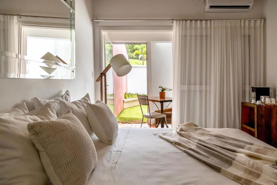 O Hotel Boutique Frangipani, em Brotas, oferece uma experiência sofisticada em meio à natureza, ideal para quem busca conforto e exclusividade na região do Caminho das Cachoeiras. A propriedade dispõe de piscinas coberta e ao ar livre com vista para o vale, academia, serviços de massagem, trilhas organizadas, recepção 24 horas, Wi-Fi gratuito e estacionamento privativo gratuito. Os quartos são elegantes e bem equipados, com varanda ou varanda térrea com vista panorâmica, ar-condicionado, TV de tela plana a cabo, frigobar, telefone, mesa de trabalho e banheiro privativo com amenities e secador de cabelo, sendo que algumas unidades contam com banheira de hidromassagem, jardim privativo e espaço ampliado. O restaurante serve diariamente um café da manhã completo e variado, com pães, frutas, confeitaria e bebidas, proporcionando uma experiência gastronômica à altura do ambiente refinado e acolhedor.