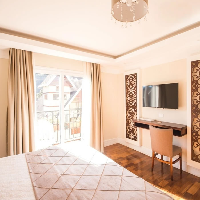 Nosso Hotel oferece apartamentos e suítes com terraço e vista panorâmica, restaurante, sistema interno de calefação, cofre, som ambiente, TV à cores, telefone, salão de jogos, American bar e centro de convenções.