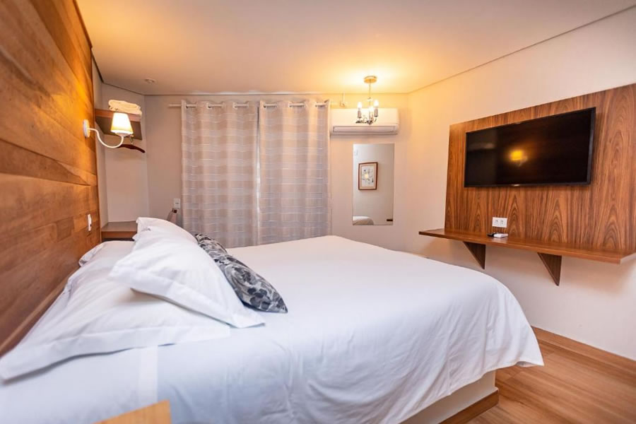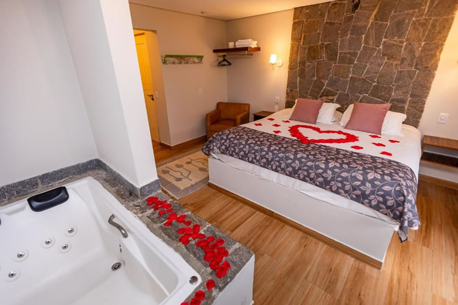 Pousada charmosa, cercada pela natureza, com 22 acomodações entre suítes duplas, triplas e chalés com hidromassagem e lareira. Pet friendly, com café da manhã e enxoval inclusos na diária.