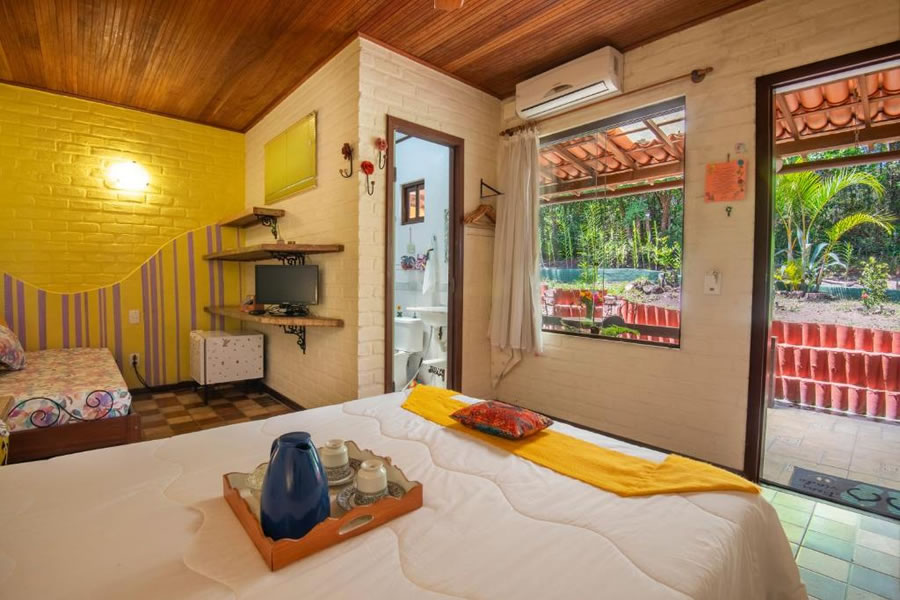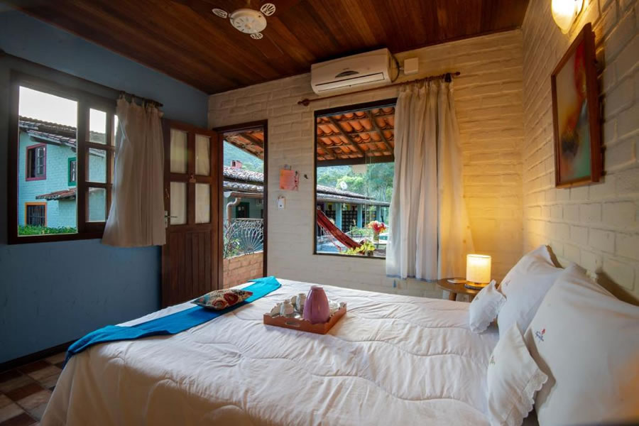 A Pousada Villa Lagoa das Cores, no Vale do Capão, oferece acomodações charmosas com decoração acolhedora, cercadas por montanhas e natureza. Com piscina ao ar livre, spa holístico e espaços para meditação, é ideal para relaxar e renovar as energias. Os quartos climatizados contam com varanda com vista e TV de tela plana, garantindo conforto e tranquilidade. Um café da manhã caseiro é servido diariamente, e a região oferece trilhas e atividades ao ar livre que completam a experiência em um dos destinos mais especiais da Chapada Diamantina.