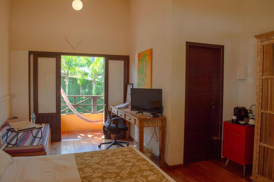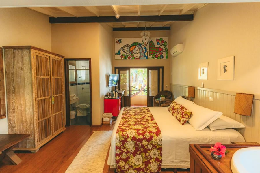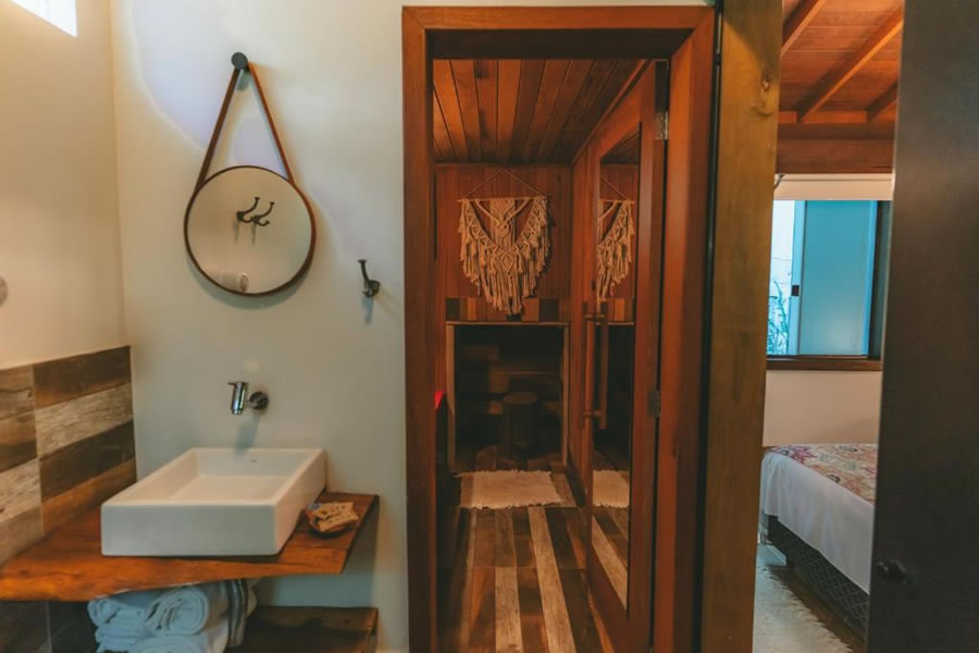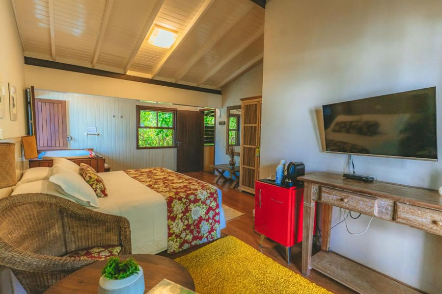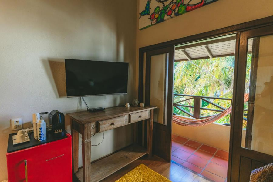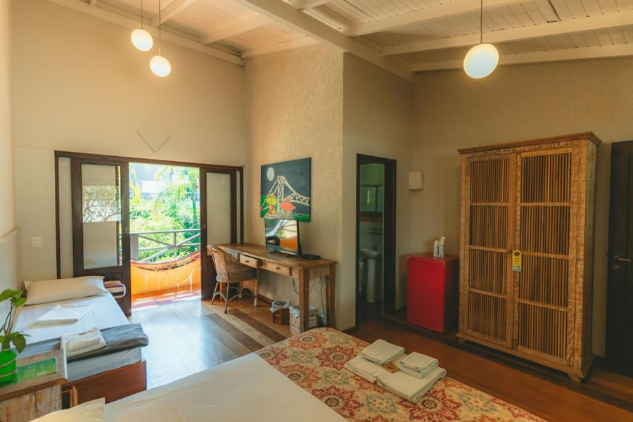 A Pousada Vila Tamarindo Eco Lodge é o refúgio perfeito para quem busca descanso em meio à natureza. Quartos amplos e charmosos com piso e móveis de madeira reciclada garantem aconchego, e a varanda com rede é um convite ao relax. Aproveite o delicioso café da manhã com itens caseiros, a piscina, o jardim e a cafeteria. Explore os arredores ou apenas curta o clima tranquilo desse paraíso ecológico.