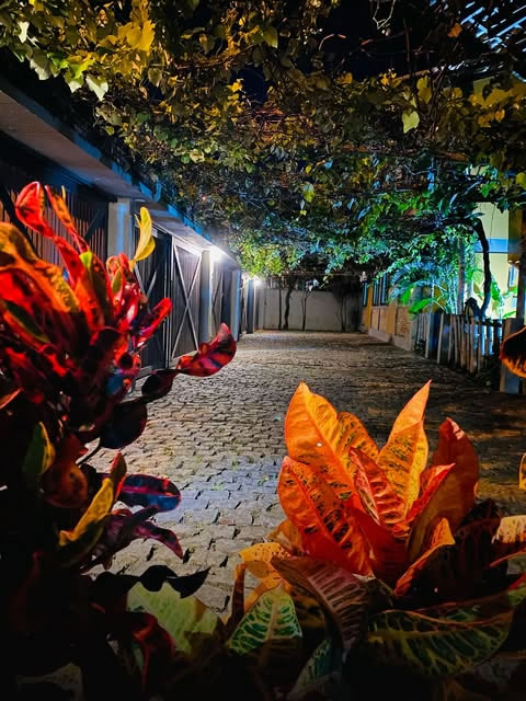 Tem um ambiente super aconchegante, e à noite, eles a deixam iluminada por tochas, o que cria um clima super romântico!