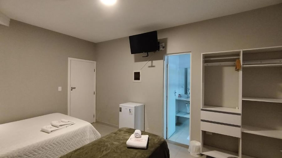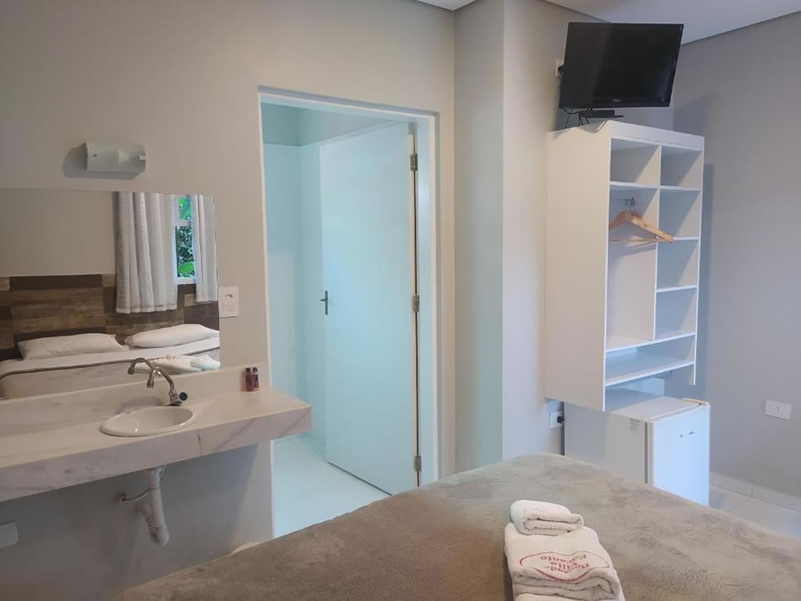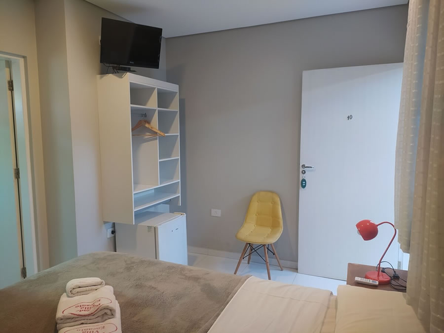 A Pousada Villa Encanto é uma opção prática e acolhedora para quem busca conforto e bom custo-benefício, oferecendo Wi-Fi e estacionamento privativo gratuitos, além de quartos simples e bem iluminados equipados com ar-condicionado, TV, frigobar, banheiro privativo com água quente, roupa de cama e toalhas, contando ainda com café da manhã em estilo buffet com frutas da estação, pães, frios e bebidas quentes e frias, além de lounge de uso comum para momentos de descanso durante a estadia.