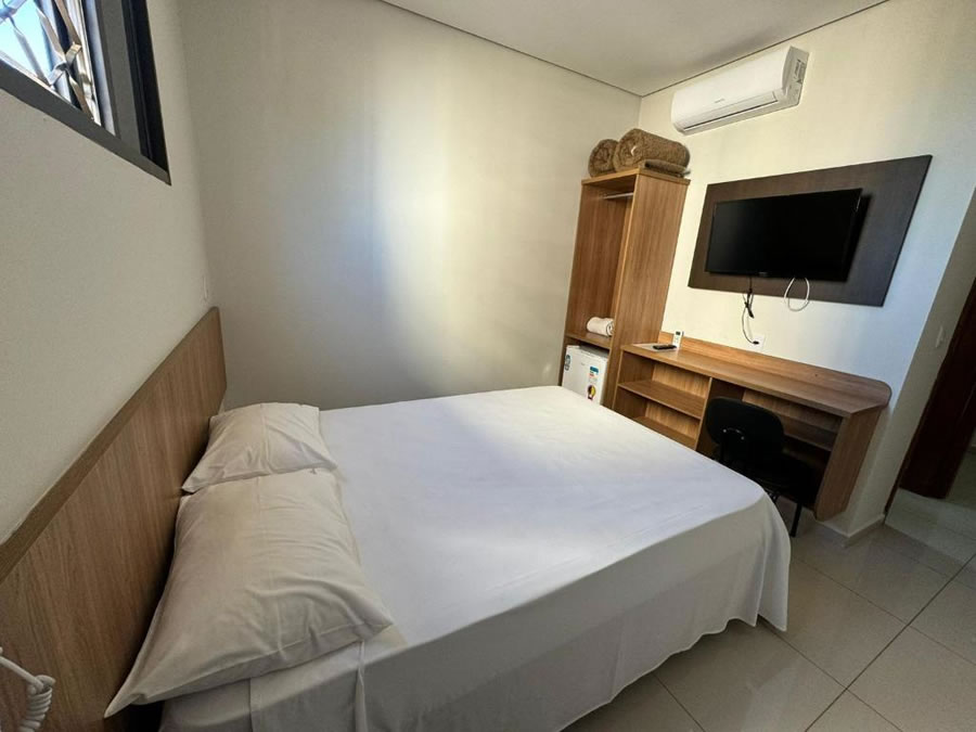 A Pousada Esmeralda Olímpia oferece uma estadia confortável e prática, ideal para quem deseja aproveitar as atrações da cidade com tranquilidade. A propriedade conta com Wi-Fi gratuito em todas as áreas, balcão de turismo e recepção 24 horas com atendimento em português e inglês, garantindo suporte aos hóspedes durante toda a estadia. Os quartos são equipados com ar-condicionado, guarda-roupa, banheiro privativo com chuveiro, produtos de banho de cortesia e secador de cabelo, além de roupa de cama e toalhas, proporcionando conforto e funcionalidade. Com ambiente acolhedor e boa localização, a pousada é especialmente apreciada por casais que buscam comodidade em Olímpia.
