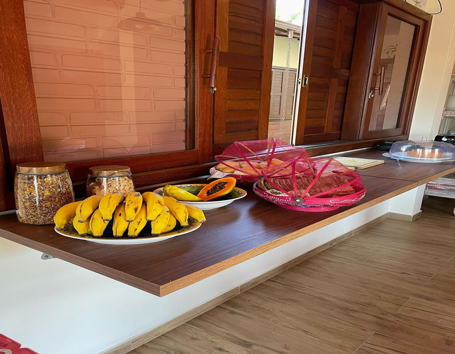 A pousada possui 2 tipos de suítes ambas com Cama de casal, TV, frigobar, ventilador de teto e banheiro.