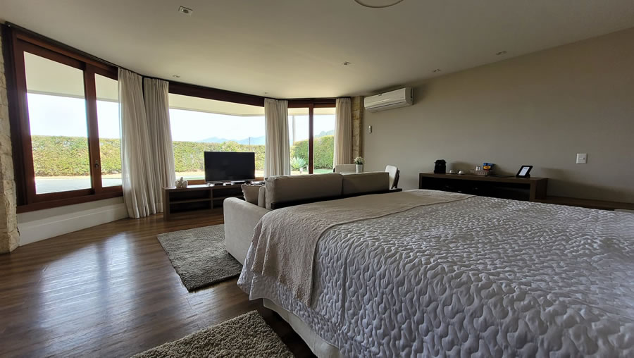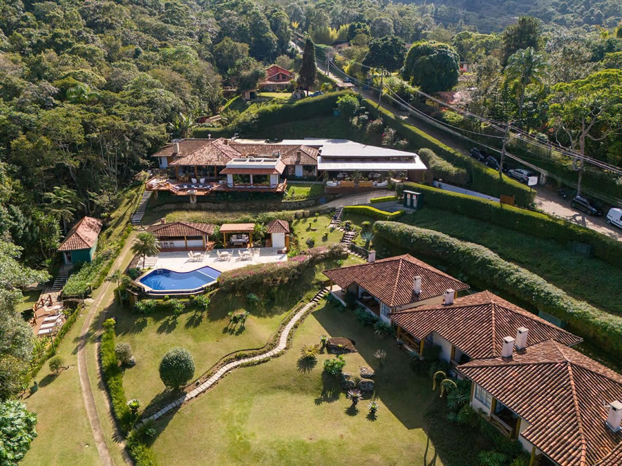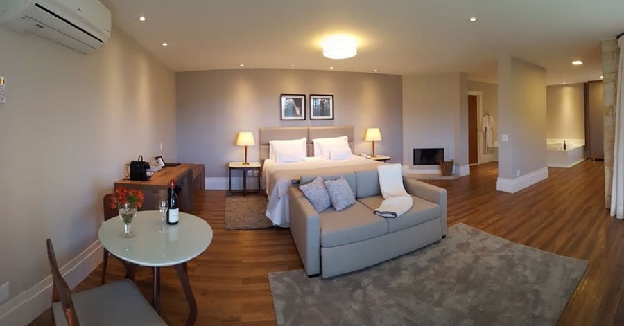 Viva o charme em Petrópolis na Pousada La Belle Bruna! Escolha entre 5 Suítes Master com hidromassagem ou 6 Suítes Superiores, todas com lareira, ar-condicionado split (quente e frio), DVD, TV LCD 32'', frigobar e cofre privativo. Relaxe em nossas piscinas: aquecida e coberta, de borda infinita e de água natural. Além disso, contamos com sauna seca e a vapor, e uma academia para seu bem-estar.