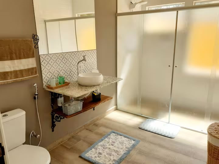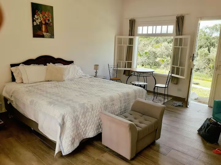 A Pousada Sonho do Campo, em São Pedro, oferece hospedagem tranquila em meio à natureza, ideal para quem busca descanso e contato com o ambiente rural. A propriedade conta com piscina, jardim, restaurante e agradável vista para o jardim, além de Wi-Fi gratuito em todas as áreas. As acomodações possuem varanda, ar-condicionado, TV de tela plana e banheiro privativo com chuveiro e produtos de higiene; algumas unidades também dispõem de cozinha equipada com geladeira, forno e cooktop, proporcionando mais praticidade durante a estadia. O café da manhã é servido diariamente e os hóspedes podem aproveitar o terraço ao ar livre ou realizar trilhas nas proximidades, tornando a experiência ainda mais completa em São Pedro.