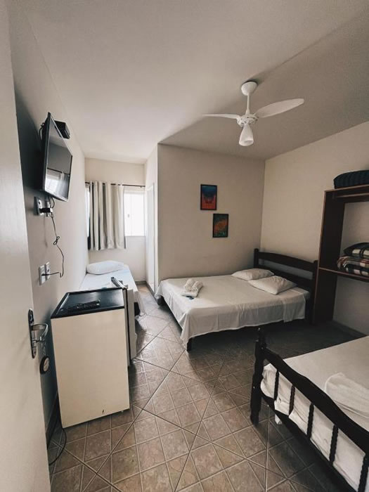 A Pousada Serra Branca oferece uma estadia confortável em ambiente tranquilo, ideal para quem busca descanso e praticidade durante a viagem. A propriedade dispõe de piscina ao ar livre aberta o ano todo, churrasqueira, Wi-Fi gratuito em todas as áreas e estacionamento privativo gratuito. A recepção funciona 24 horas, garantindo mais comodidade aos hóspedes. Os quartos são equipados com TV de tela plana com canais via satélite, banheiro privativo com chuveiro, além de roupa de cama e toalhas; algumas unidades também contam com varanda, proporcionando um espaço extra para relaxar. Para começar bem o dia, a pousada serve café da manhã diariamente, completando a experiência de hospedagem.